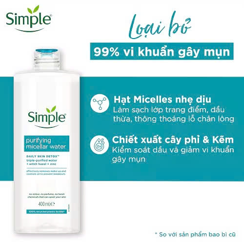 Nước tẩy trang da dầu mụn Simple 400ml
